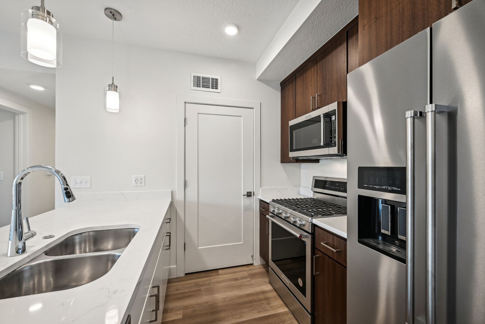 • Designer Finishes: Immerse yourself in luxury with modern finishes, including LVT floors, quartz countertops, and stainless steel appliances in the kitchen.